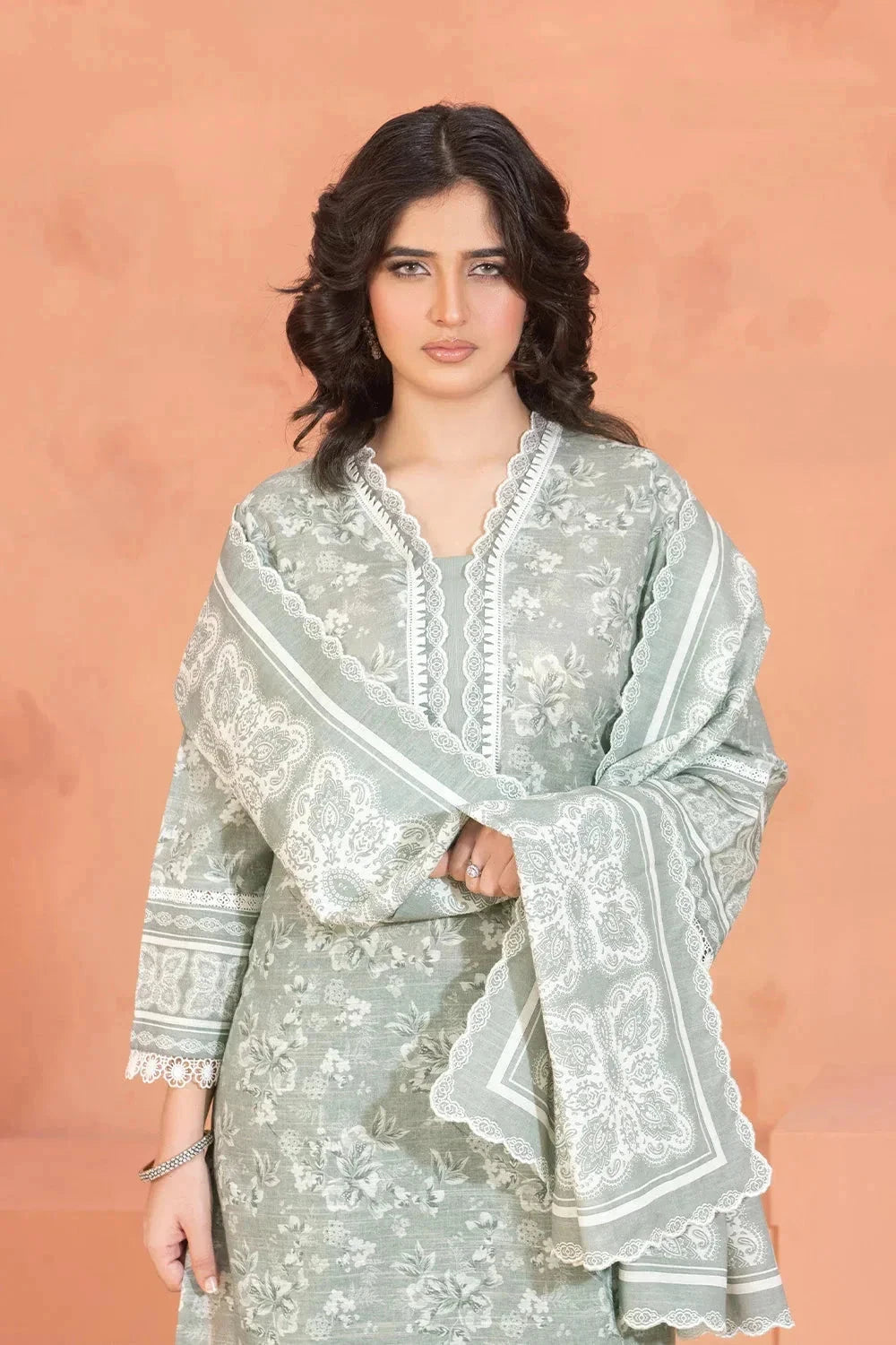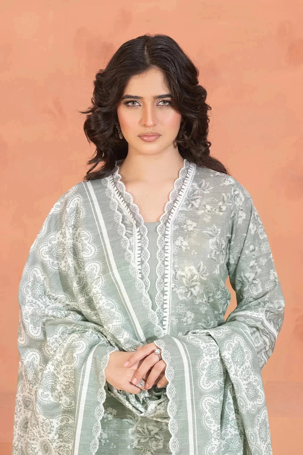 PRODUCT DETAILS SHIRT Printed Khaddar Shirt 3 M TROUSER Dyed Khaddar Trouser 2.3 M DUPATTA Printed Khaddar Dupatta 2.5 M COLOR Powder Ash ATTRIBUTEExplore Winter vibes 3pc Printed Khaddar Suit this collection features printed Khaddar shirt and dyed trouser with printed Khaddar dupatta.The suit features a beautifully...
