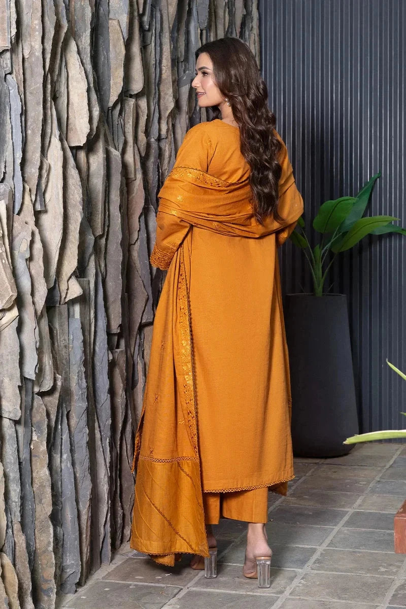 PRODUCT DETAILS SHIRT Embroidered Khaddar Shirt Embroidered Khaddar Front Lace Embroidered Sleeves Lace TROUSER Dyed Khaddar Trouser DUPATTA Embroidered Khaddar Dupatta COLOR Mustard ATTRIBUTEExplore Winter vibes 3pc Embroidered Khaddar Suit this collection features embroidered Khaddar shirt and trouser with embroidered Khaddar dupatta.The suit features a...