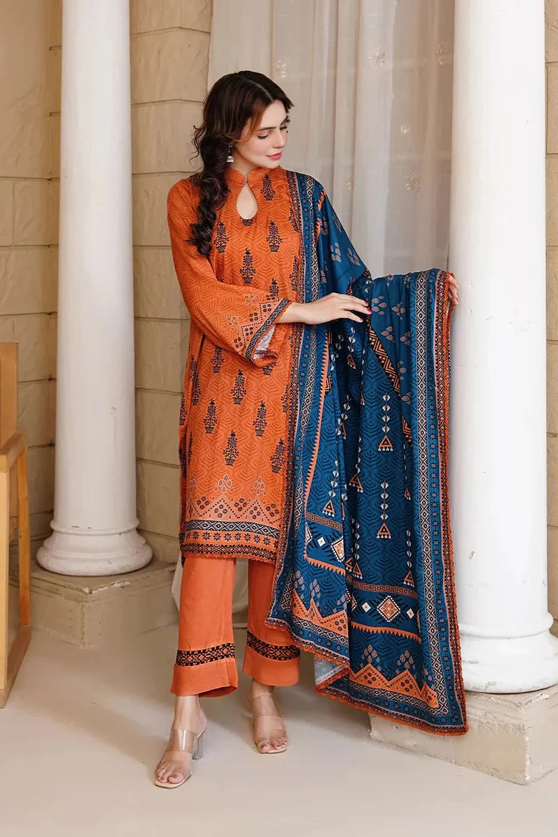 PRODUCT DETAILS SHIRT Printed Embroidered Kotail Linen Shirt TROUSER Dyed Kotail Linen Trouser DUPATTA Printed Kotail Linen Dupatta COLOR Dusty Orange ATTRIBUTEExplore Winter vibes 3pc Embroidered Kotail Linen Suit this collection features Embroidered Kotail Linen shirt and dyed trouser with printed Kotail Linen dupatta.The suit features a...