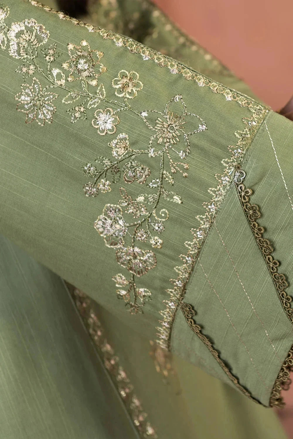 PRODUCT DETAILS SHIRT    Embroidered Khaddar Shirt 3 M    Embroidered Lace TROUSER    Dyed Khaddar Trouser 2.3 M DUPATTA    Embroidered Khaddar Dupatta 2.5 M COLOR    Maximum Green ATTRIBUTEExplore Winter vibes 3pc Embroidered Khaddar Suit this collection features embroidered Khaddar shirt and trouser with Printed Khaddar Dupatta.The suit features...