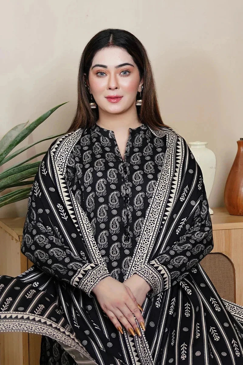 PRODUCT DETAILS SHIRT Printed Kotail Linen Shirt TROUSER Printed Kotail Linen Trouser DUPATTA Printed Kotail Linen Dupatta COLOR Black ATTRIBUTEExplore Winter vibes 3pc Printed Kotail Linen Suit this collection features printed Kotail Linen shirt and printed trouser with printed Kotail Linen dupatta.The suit features a beautifully printed...