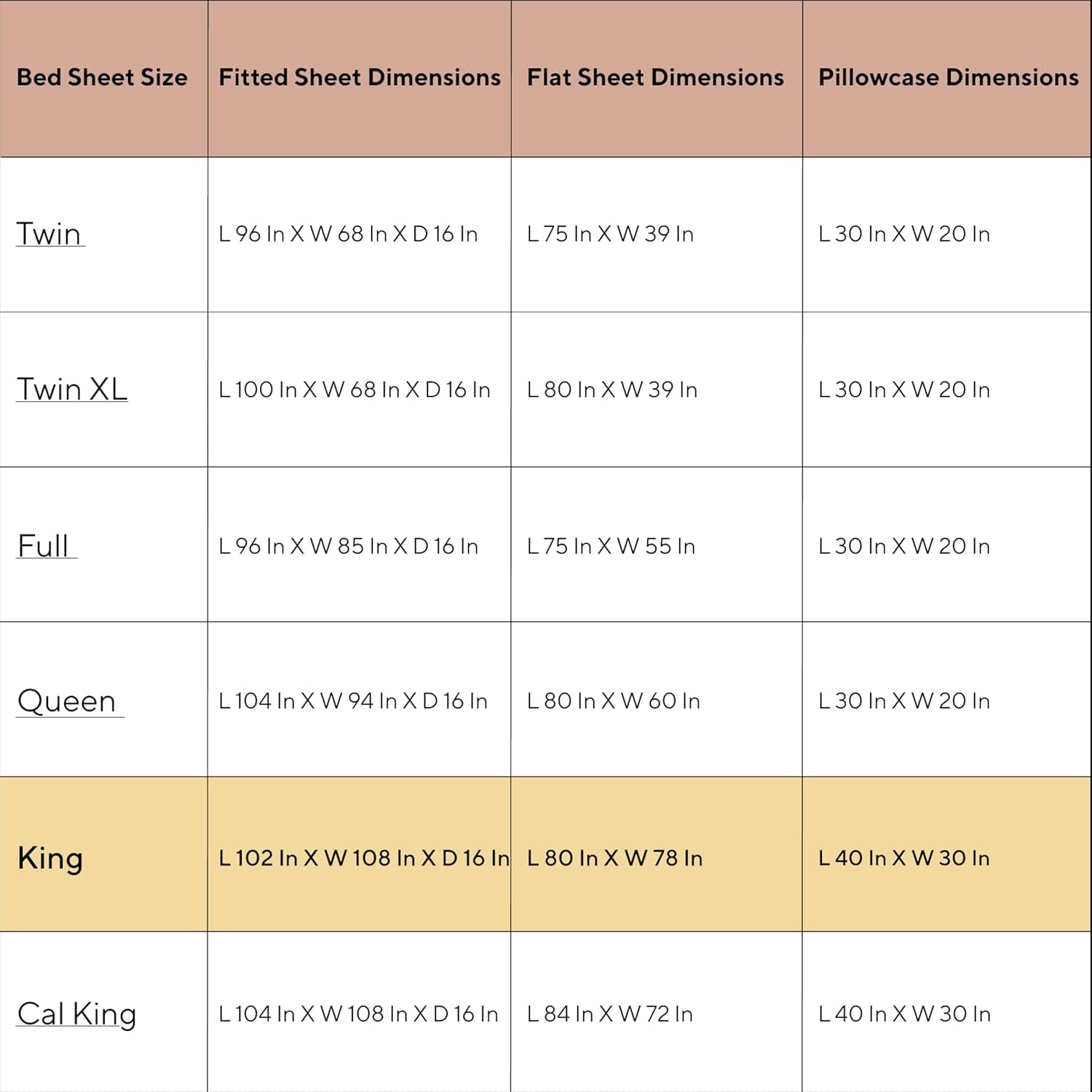 King Size Includes: