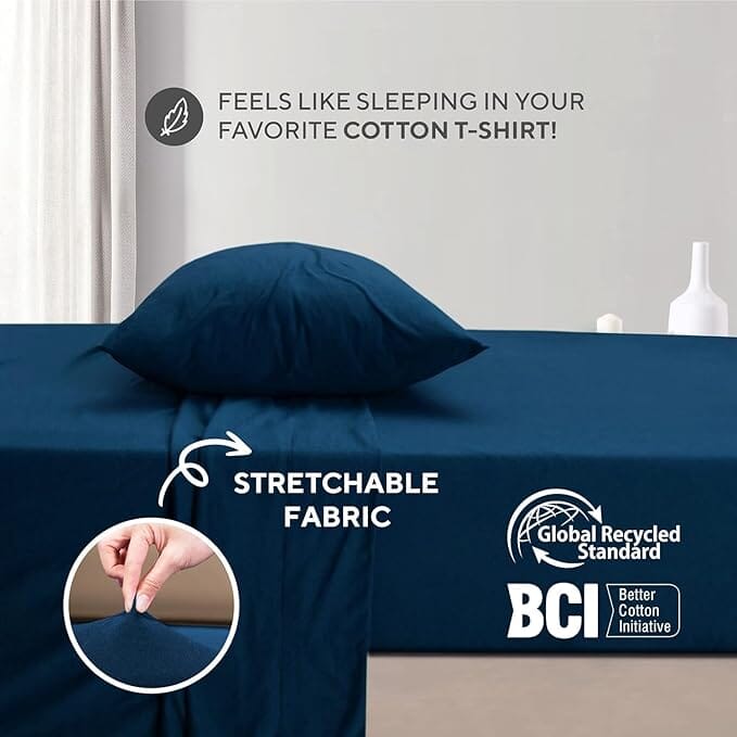 Enjoy t-shirt–soft comfort with our breathable polycotton jersey sheet set. Crafted with a cozy knit design, these sheets offer year-round comfort—cool in summer and warm in winter—while staying soft, durable, and fade-resistant.
